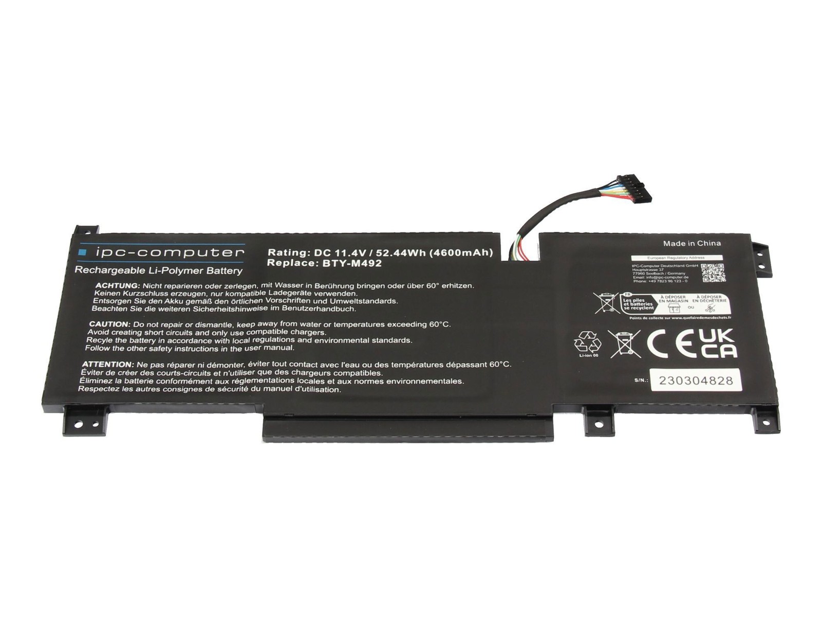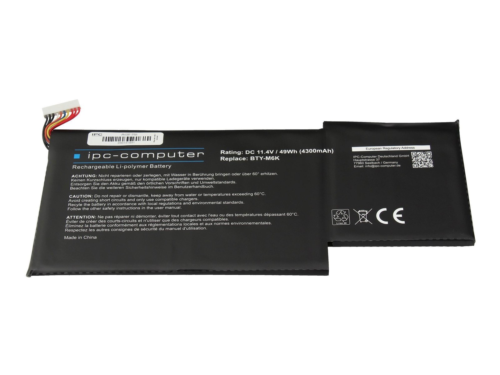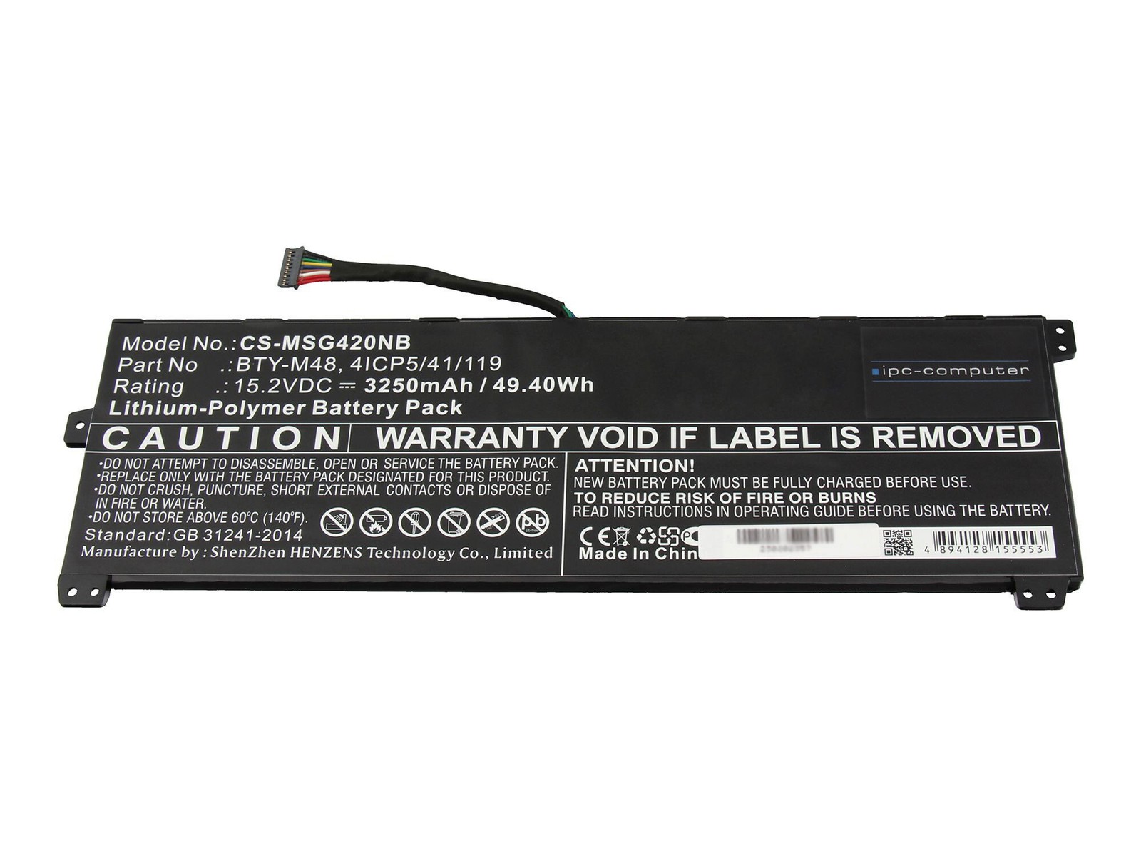 IPC-Computer Batterie compatible avec MSI BTY-M48 avec 49,40Wh