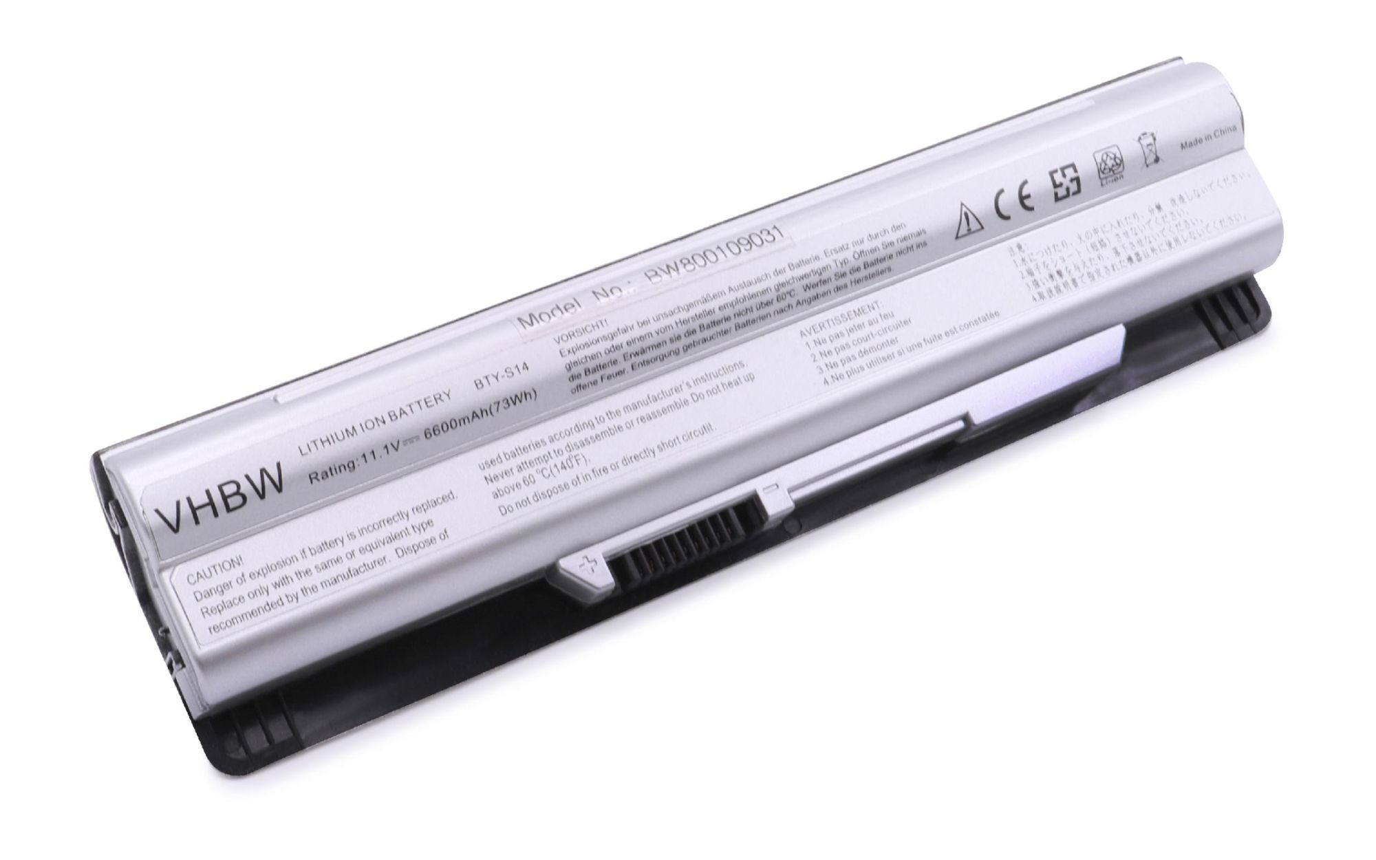 vhbw Li-Ion Batterie 6600mAh (11.1V) argent pour laptop, notebook MSI Megabook GE620DX, GE70 comme BTY-S14.