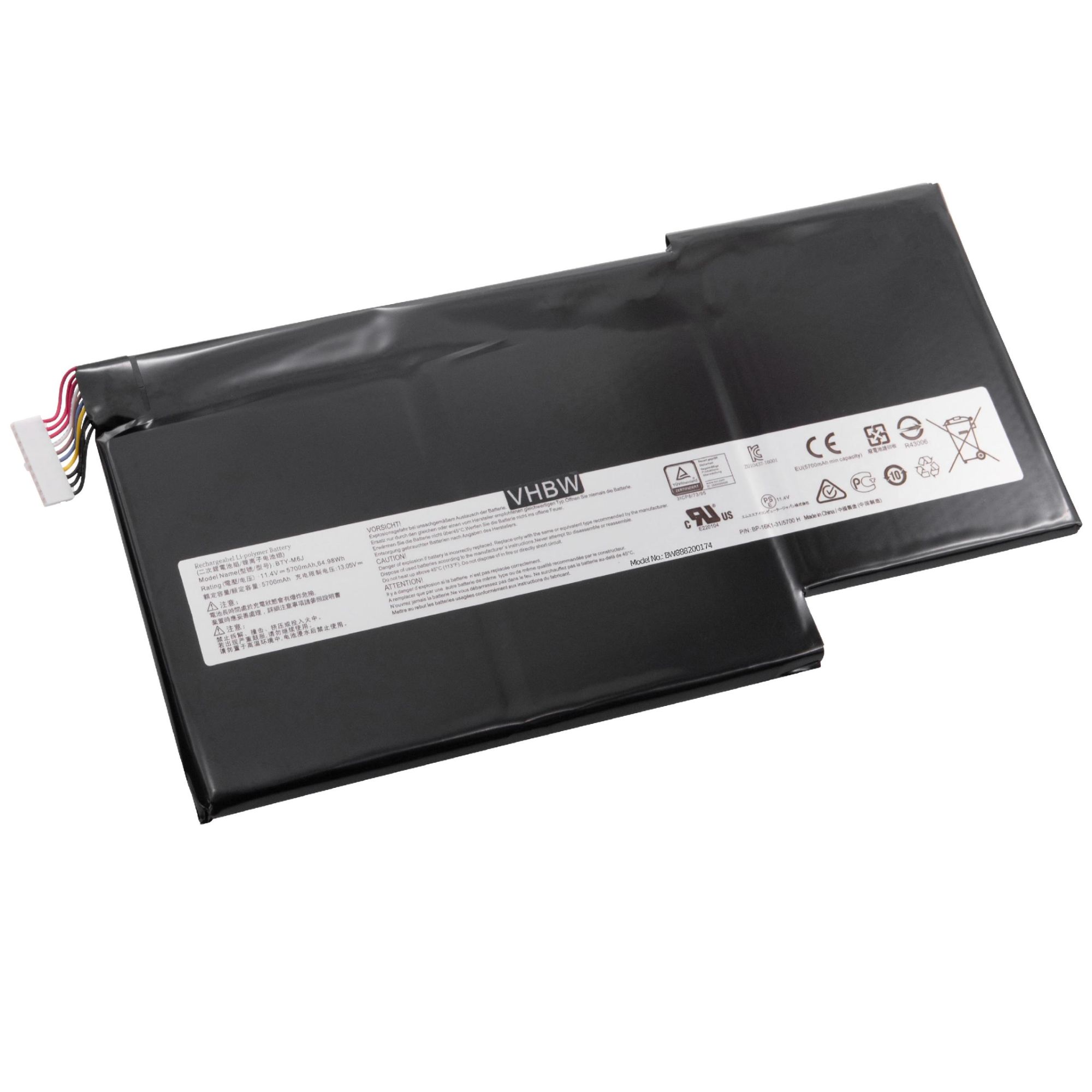 vhbw Li-Polymère batterie 5700mAh (11.4V) pour ordinateur portable laptop notebook MSI GS63, GS63 7RE-009CN, GS63 7RE-018CN, GS63VR, GS63VR 6RF-016CN