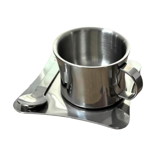 Homyl Tasse en Acier Inoxydable avec Soucoupe et Cuillère Portable Mug à Double Paroi Multifonctionnel Résistant à La Chaleur et Incassable Pratique pour Ut, 79 ML