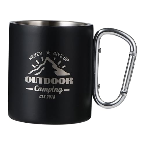Folpus Tasse Randonnée Mug Métal Double Paroi Poignée Mousqueton Boisson Chaude Adaptée Aux Sorties Bureau Fête Foyer, Noir