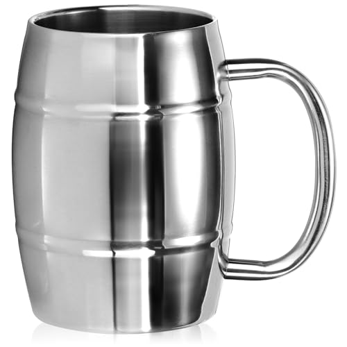 com-four® Gobelet XL en acier inox 500 ml – chope isotherme à double paroi – tasse de camping sans BPA – mug thermique robuste – idée cadeau pour la fête des pères (couleur argent - aspect tonneau)