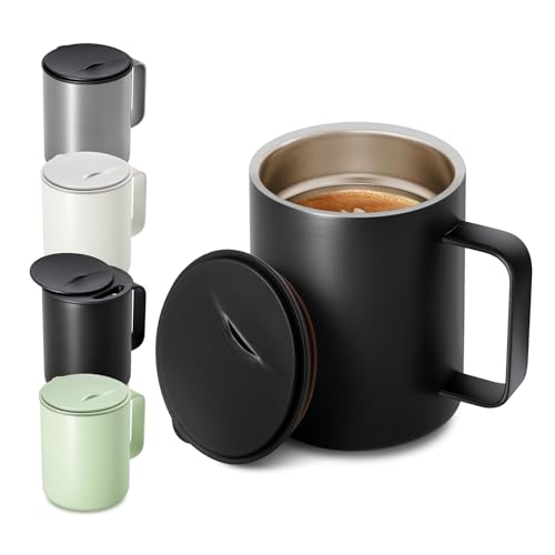 Homealexa Mug à Café 400 ml Double Paroi sous Vide Thermo Tasse à Café et à Thé en Acier Inoxydable Mug Thermique avec Poignée et Couvercle Coulissant