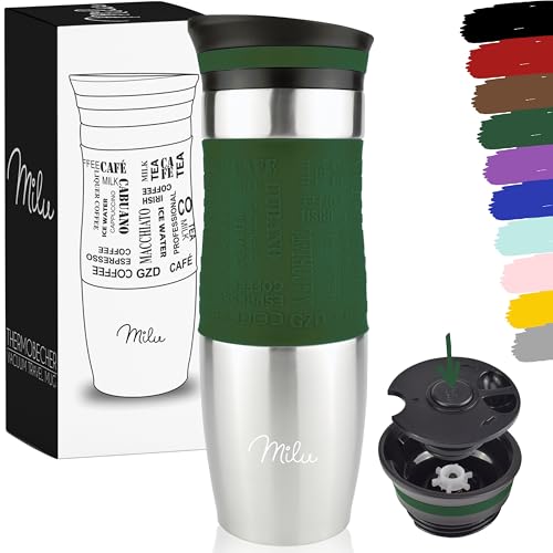 Milu Mug Isotherme Etanche 370ml 450ml Thermo Café-Thé I Tasse isolée pour café et thé à emporter, Double Paroi Isolée sous Vide, Acier Inoxydable I Tasse de voyage Chaud & froid (Olive, 450ml)
