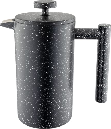 Café Olé CFD Granite Cafetière, corps à double paroi en acier inoxydable 18/10 et filtre à mailles, finition effet granit noir, 350 ml (3 tasses à espresso ou 1 mug)