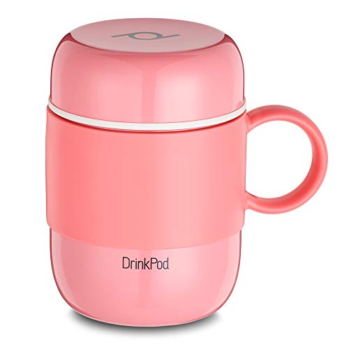 DrinkPod mug isotherme avec manche en acier inoxydable à double paroi sans BPA – 0.28L, rose, 6 heures chaud ou froid