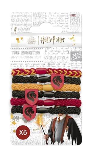 Harry Potter - Lot de 6 Élastiques à Cheveux - Coiffure Facile - Accessoire Officiel de l'École de Poudlard - Maison Gryffondor