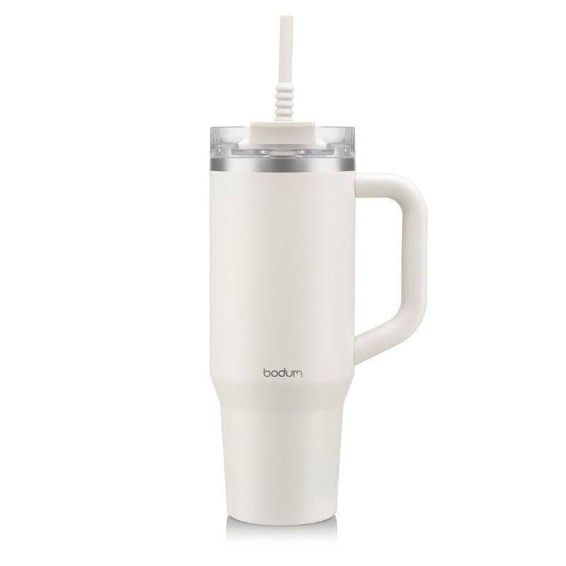 Bodum Mug de voyage isotherme en inox avec paille et poignée Blanc crème - 1,2 L