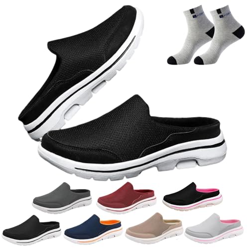 QMLGUO Sandales Orthopédiques Confortables Et Respirantes, Mules à Enfiler Pour Hommes, Demi-baskets, Maille Respirante, Demi-baskets à Enfiler (Noir,43)
