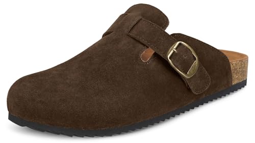 Intini Mules pour Hommes Femme Chaussons Sabots Cuir Fermé avec Semelle Chaussures de Jardin Pantoufles et Confortable Marron foncé 43