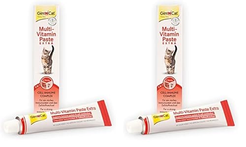 GimCat Pâte Multi-Vitamin - Snack Bon pour la santé des Chats, Active Les défenses de l’Organisme et renforce Le système immunitaire - 1 Tube (1 à 50 g) (Lot de 2)