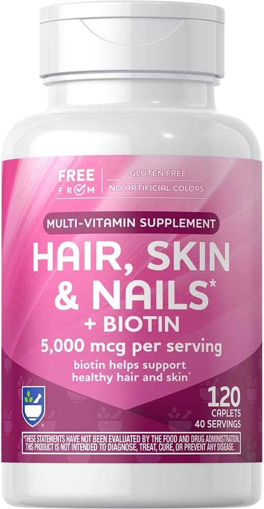 HAIR SKIN & NAILS Multi-vitamin avec biotine, 120 capuchons végétaux, très co...