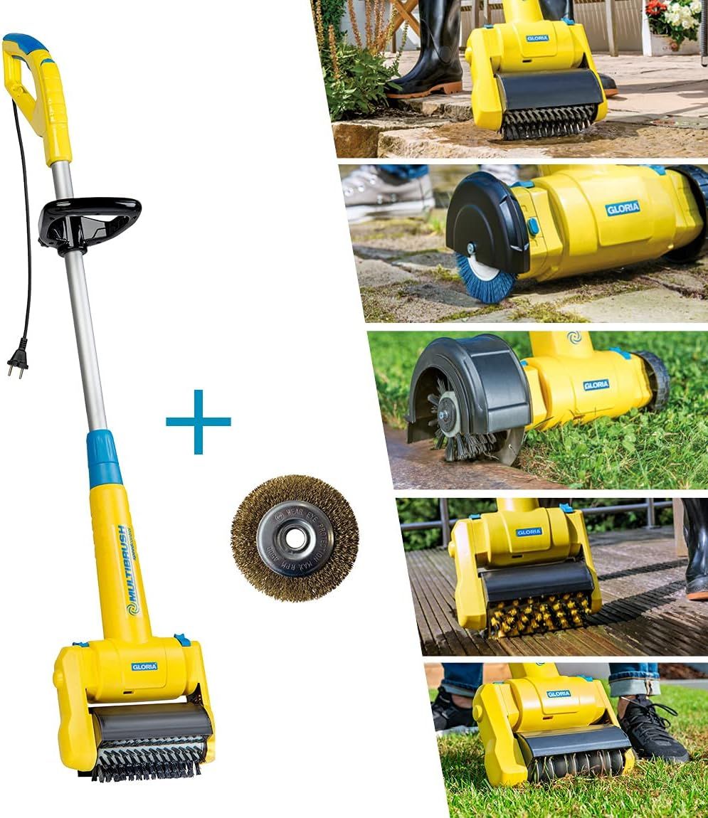 ASFASFq-GLORIA MultiBrush speedcontrol ¿ Brosse électrique Filaire 230V pour terrasse, Joints, Pierre & Bois | Désherbeur & Coupe-Bordure | Vitesse réglable | avec 2 brosses incluses