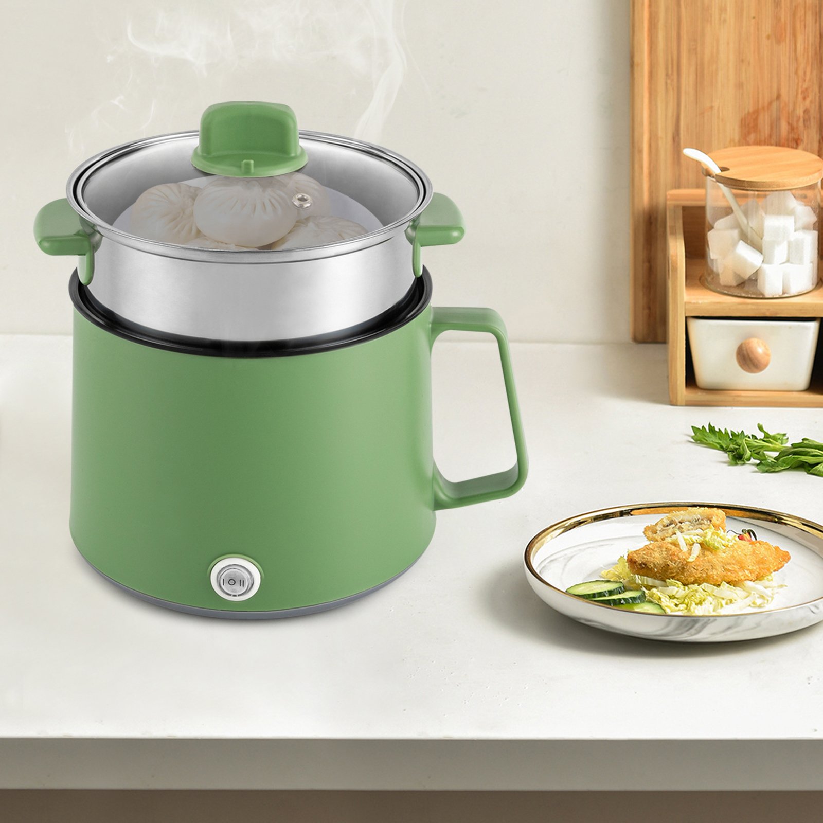 1.7L multicuiseur électrique portable anti-adhésif avec cuiseur vapeur, double contrôle de puissance pot pour stir-fry, cuiseur ramen vert