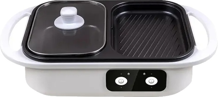 Marmite Et Poêle À Griller Électrique 2 En 1, Multicuiseur Antiadhésif Sans Fumée For La Maison, Corps Épais Moulé Sous Pression, Facile À Nettoyer