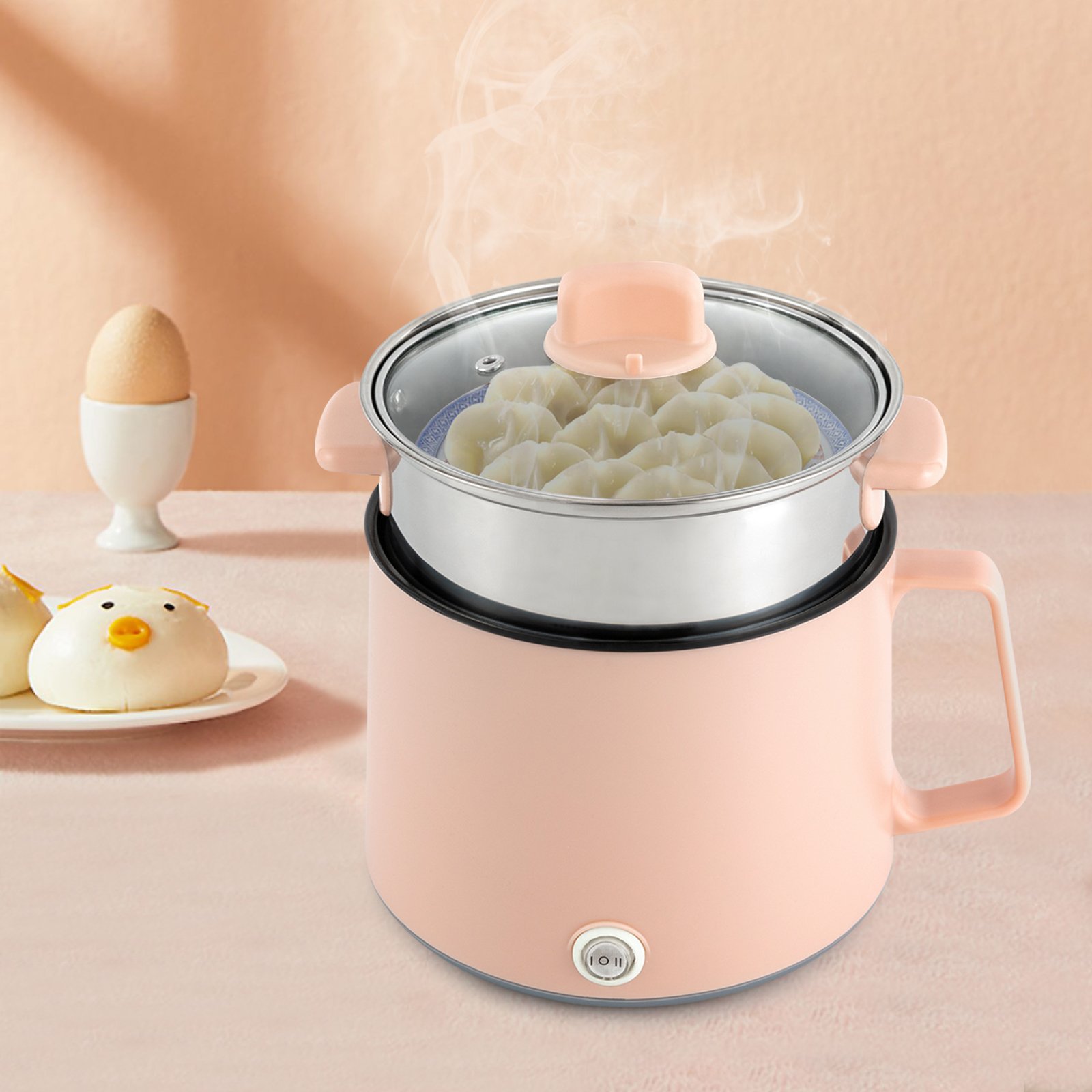 1.7L multicuiseur électrique portable anti-adhésif avec cuiseur vapeur, double contrôle de puissance pot pour stir-fry, cuiseur ramen rose