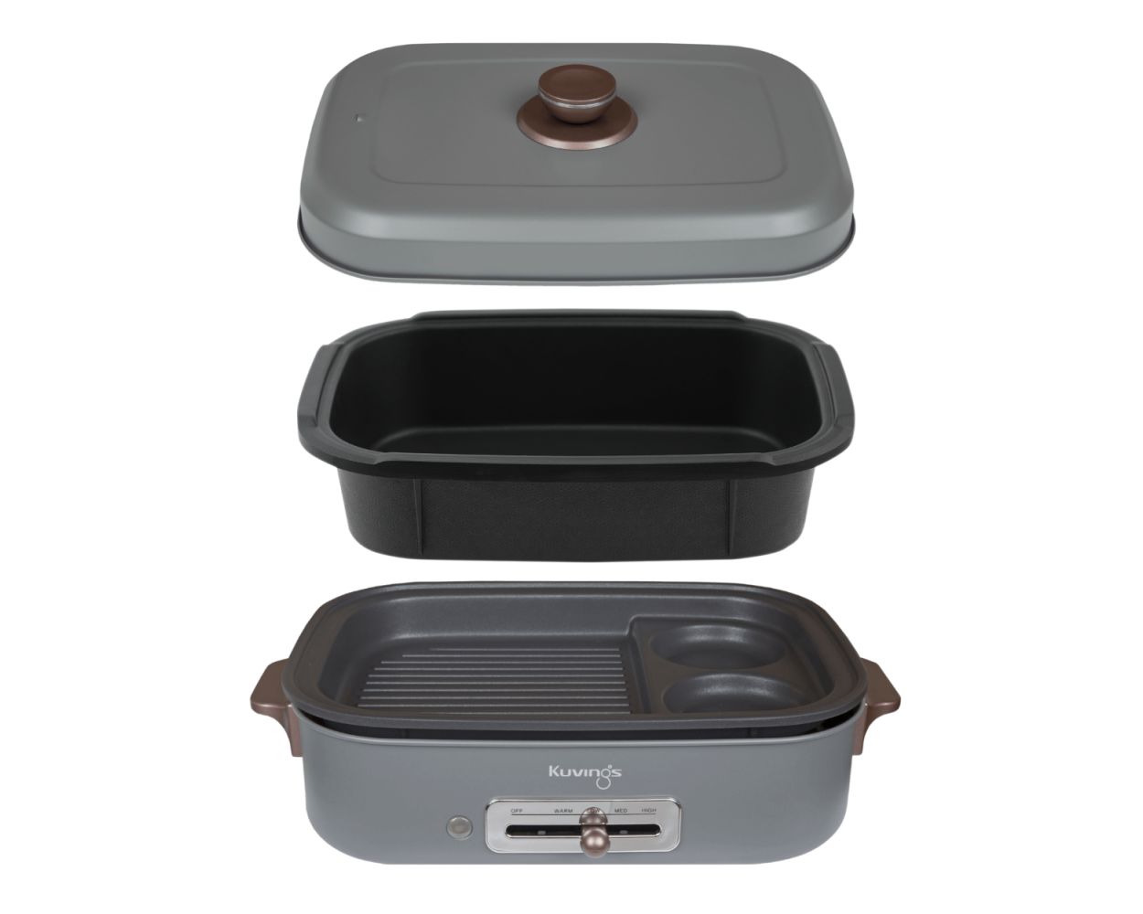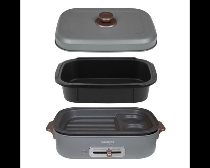 Kuvings - Plancha électrique de table antiadhésive - Multifonction : Cuisiner, griller, mijoter - Nettoyage facile - Multi-grill