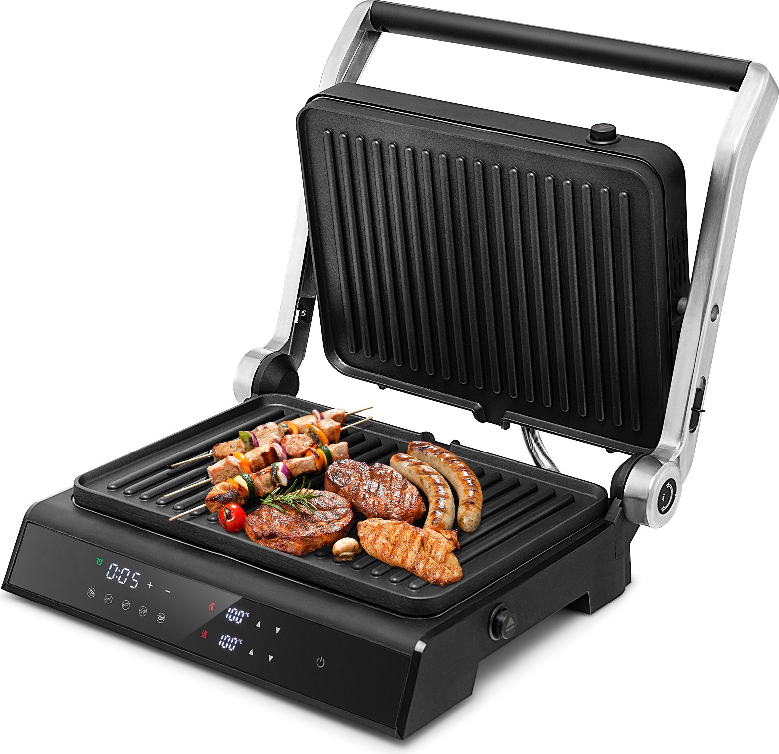Gril de contact avec écran LED Appareil à croque-monsieur Grille-pain Multigrill Gril électrique noir