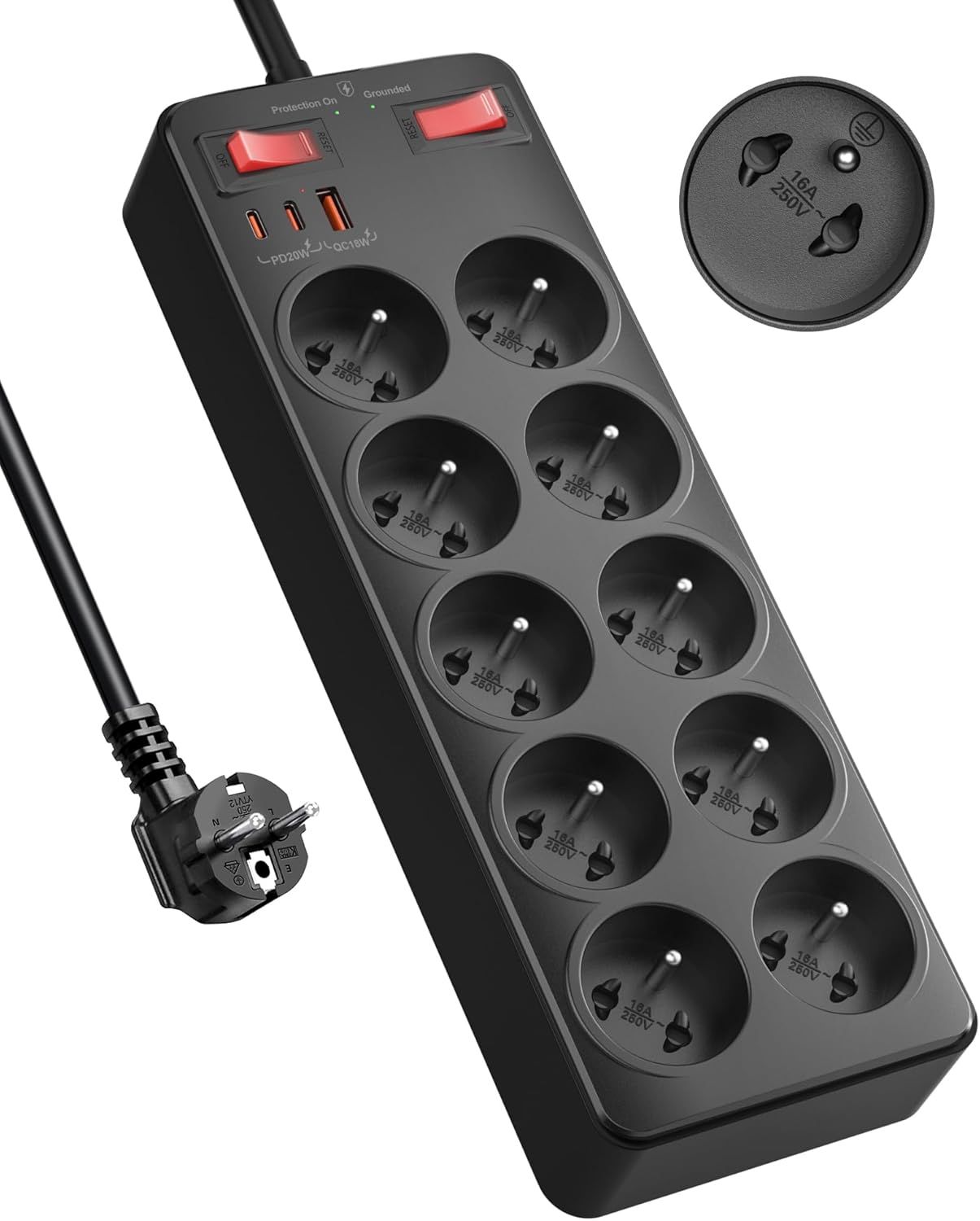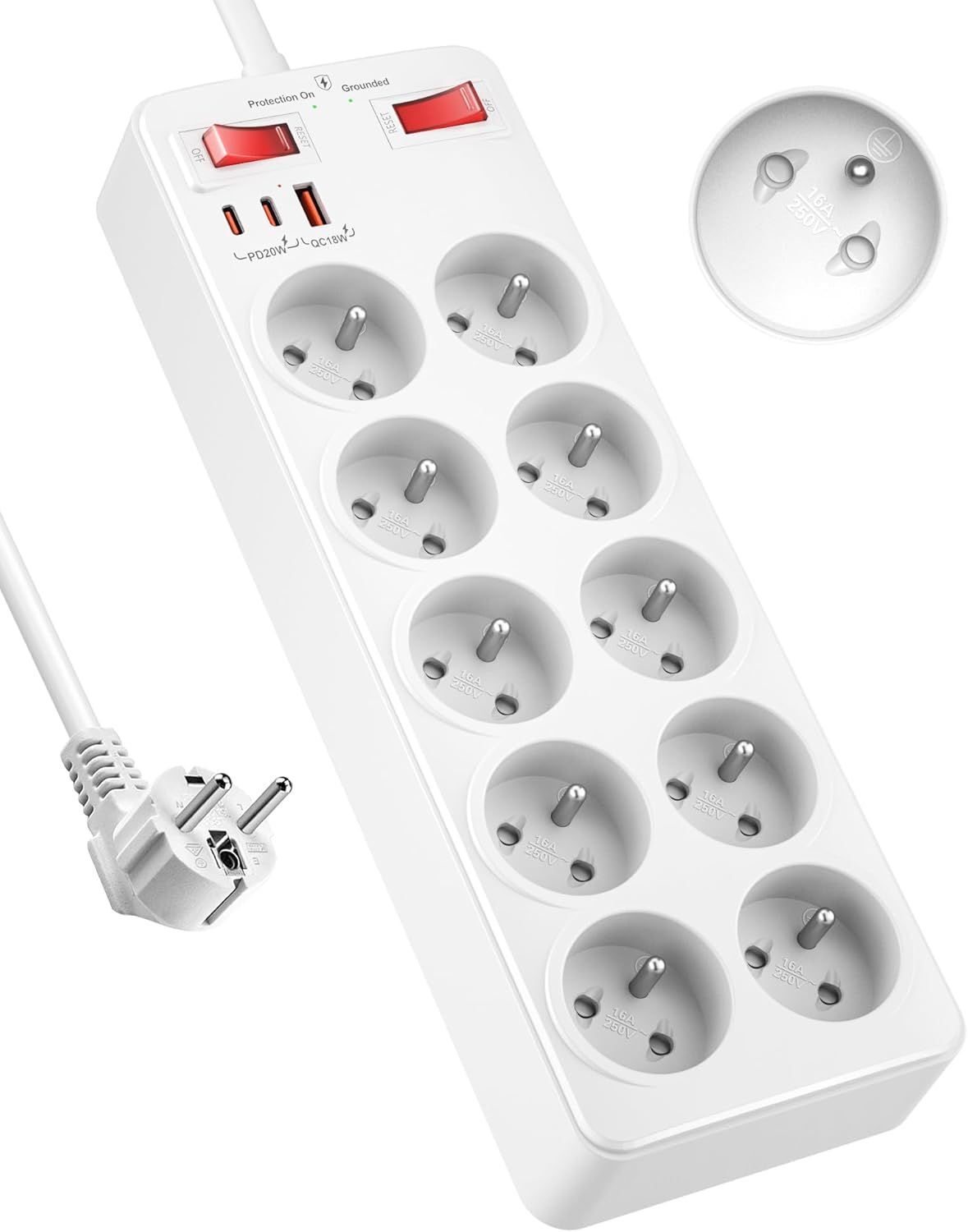 Multiprise, Prises inclinées, Interrupteur d’alimentation