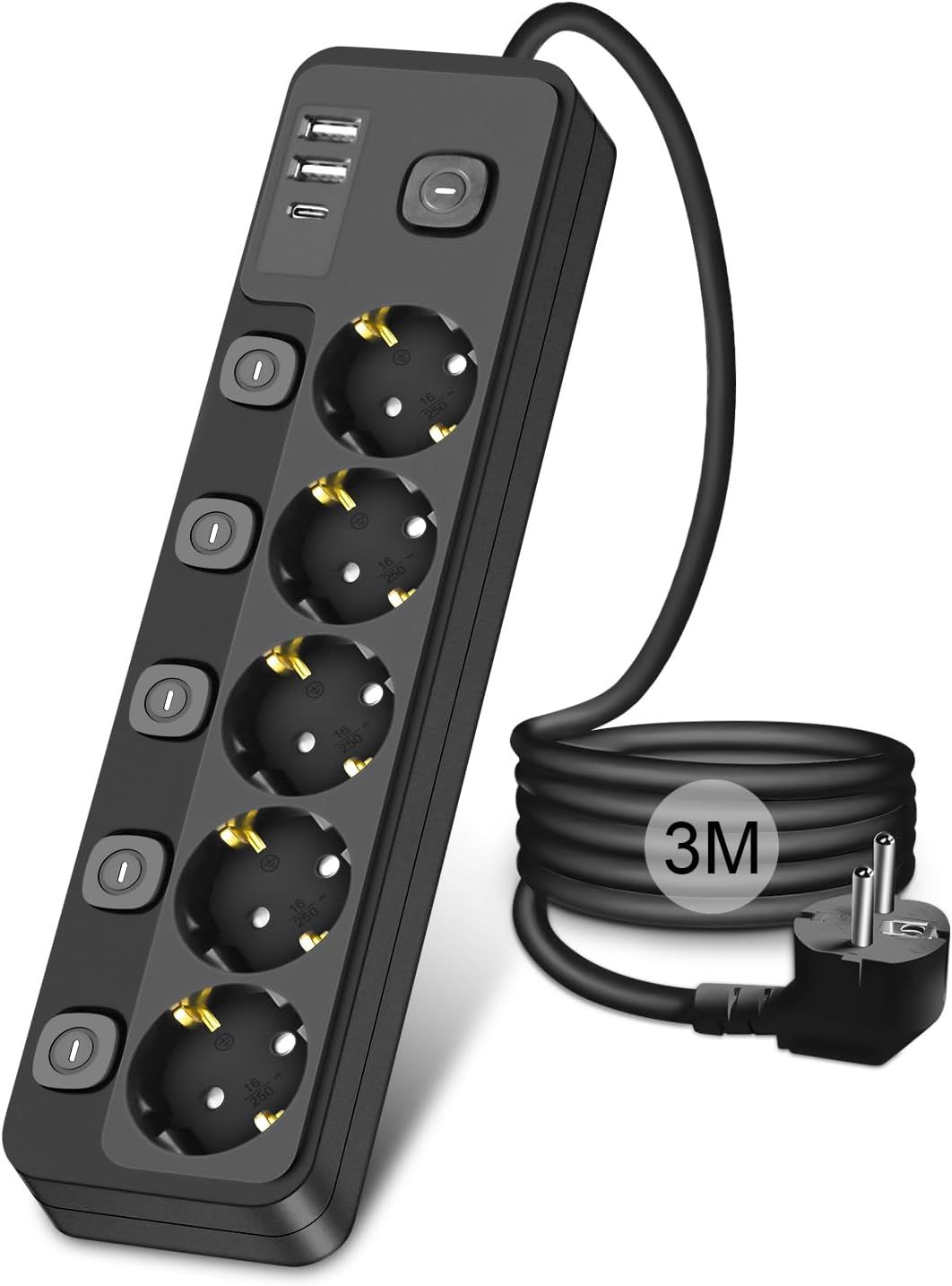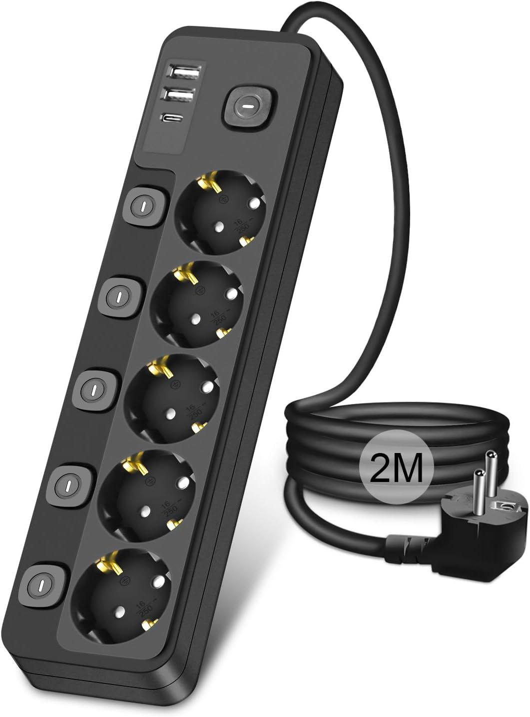 Multiprise, Prises inclinées, Interrupteur d’alimentation