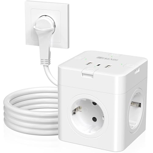 Cube multiprise 6 en 1 avec USB-C, 3 prises cubiques, commutable individuellement, avec câble de 4 m, pour bureau, maison, voyage, blanc