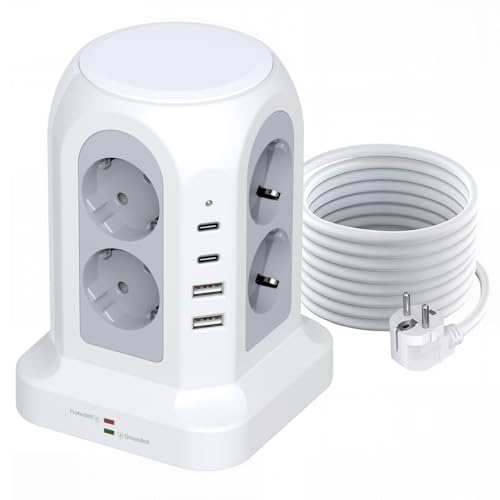 Vexloria Tour Multiprise 12 en 1, Cube de Prise avec Cube de Prise 8 Prises et 4 USB, multiprise Cube avec Multiprise Parafoudre, Interrupteur et câble de 2 m pour Bureau, Maison, Voyage