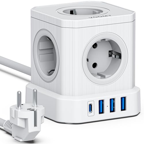 VOOMY Multiprise Cube 9-en-1 avec USB, Multiprise 5 Prises avec 4 Ports USB, Prise avec Interrupteur Parasurtenseur avec Interrupteur et Cable 2M, Rallonge