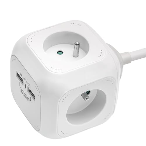 Multiprise Cube USB 3X Prise 3 USB avec Interrupteur et Rallonge de 2m pour Le Bureau, la Maison