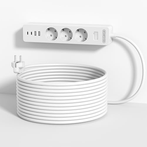 NTONPOWER 5 Mètre Multiprise Electrique USB, Multiprise avec Interrupteur 3 Prises et 2 Ports USB avec Support Mural et Viss, Multi Protection, Protection pour Les Enfants, Blanc
