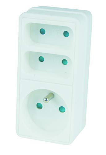 DEBFLEX Rallonge Electrique - Prise electrique - MultIPrise electrique - Adaptateur MultIPrise - TrIPlette électrique - TrIPlite Laterale 3 Socl 2P+T 16A D4.8mm +Ecl Blanc Vrac, Paquet de 3