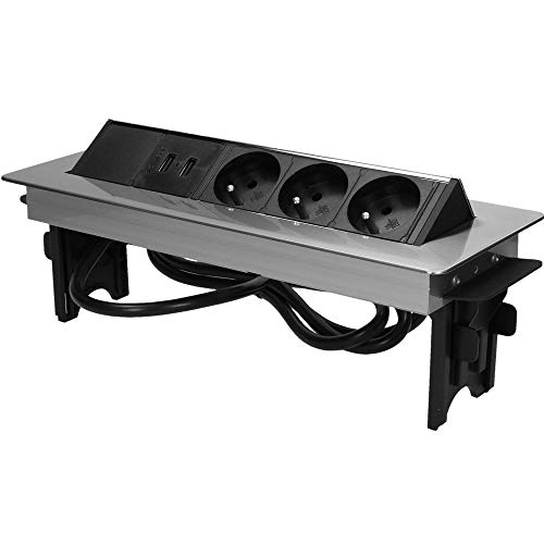 ORNO AE-1364 Bloc Multiprise Electrique Encastrable Escamotable avec USB 3 Prises 2X USB 3680W 1.8m Câble