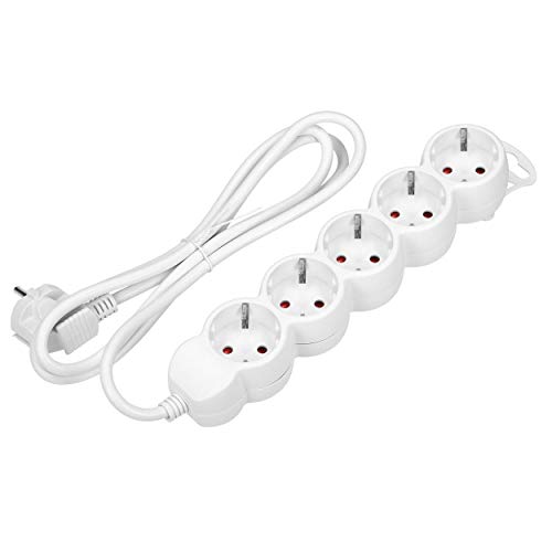 Rallonge multiprise, Extrastar Bloc 5 Prises 2P+T 16 A, Multiprise Electrique pour la Maison Le Bureau ou la Cuisine, Blanche