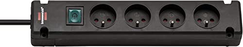 Brennenstuhl BREMOUNTA - Multiprise Electrique 4 Prises (Cable 1,5 m, avec Interrupteur, Interieur), Noir, 4 Prises