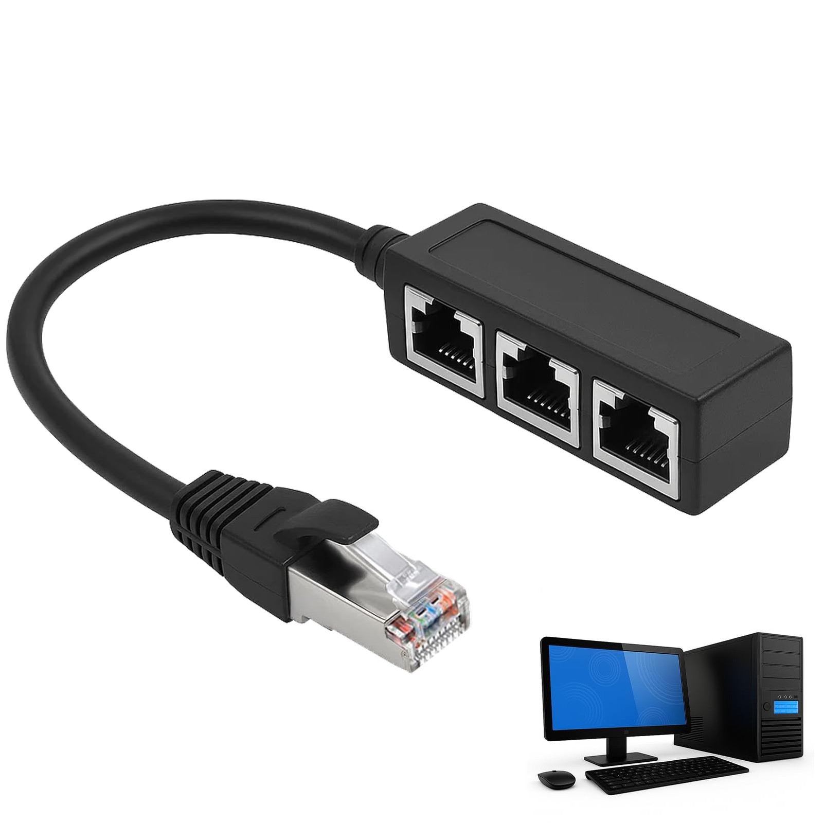 Adaptateur Repartiteur RJ45, Repartiteur Cable Ethernet RJ45 1 Mâle vers 3 Femelles, Ethernet LAN Câble Extender pour Cat5, Cat5e, Cat6, Cat7, Extension de Réseau pour Switch, Routeur