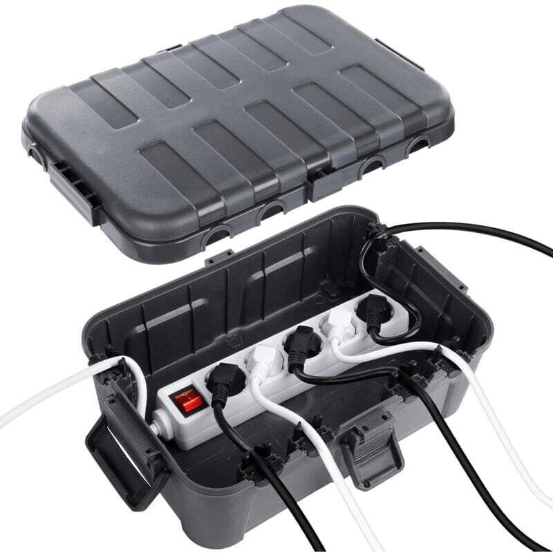 ZMdooreasy Boîte de rallonge électrique d'extérieur étanche avec plusieurs trous de sortie, design de sécurité verrouillable pour jardin, terrasse, conteneur multiprise résistant aux intempéries (S