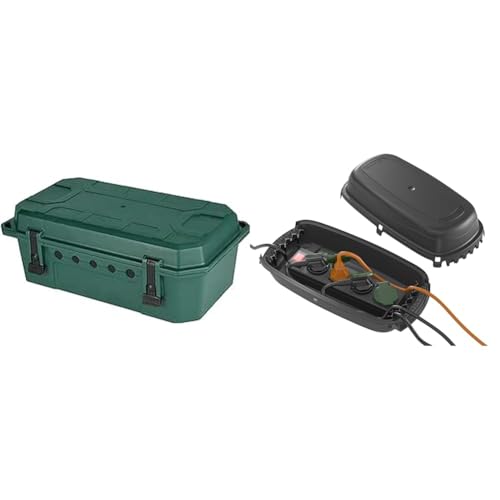 ACROPAQ Boîte Cache câble étanche - Boîte Rangement Cable, Boite Etanche Electrique Exterieur, IP 54 étanche, Robuste, (32 x 21 x 13 cm), Antidérapant, Noir - Cache multiprise