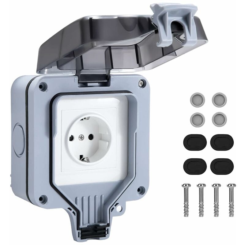 Prise Étanche IP66, Prise Exterieur Résistant aux Intempéries, Boîte de Derivation Extérieure Murale, Protection Multiprise pour Cuisine, Garage,