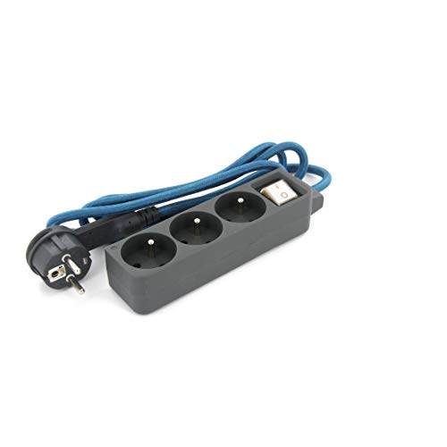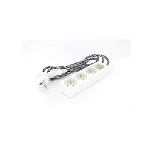 Multiprise avec câble textile - Blanc - Avec fiche - Multiprise - Meuble derrière une prise plate - Multiprise commutable - Protection enfant - Textile ancien rétro