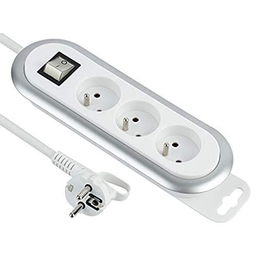 Extrastar Multiprise 3 Prises avec Interrupteur Fiche plate, Bloc 3 prises, Rallonge 3m 230 V avec sécurité Enfant, Blanc