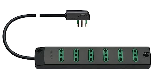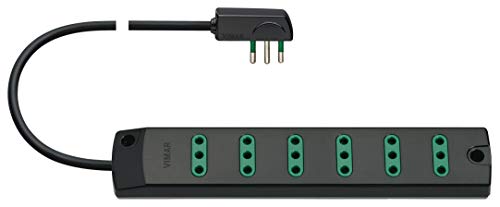 Vimar FP00402.C Multiprise mobile avec 6 sorties SICURY P11 (petite), câble 1,5 m et fiche plate 2P+T 10A (petite) standard italien type SPA11