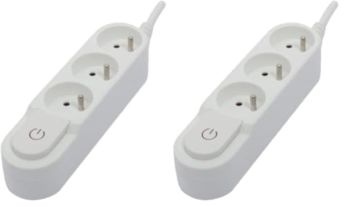 Multiprise Design 3x16A + Interrupteur et fiche Plate - Chacon (Lot de 2)