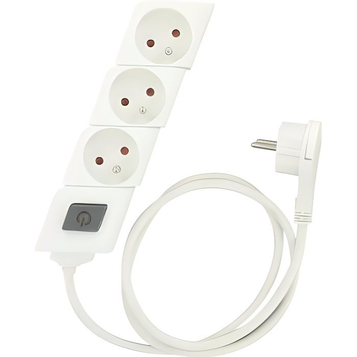 Multiprise Design 3x16A + Interrupteur et fiche Plate - Chacon