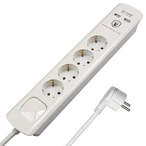 FeinTech MD432 multiprise 4 Ports + 2 Ports USB Charge Rapide Parasurtenseur Interrupteur Câble 1.5 m avec Fiche Plate