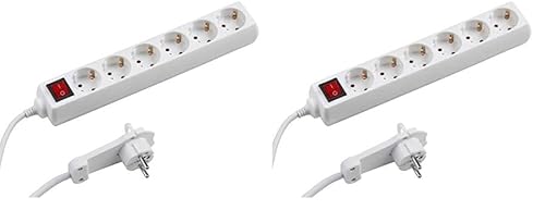 Meister 7430880 Multiprise 6 Prises - Fiche Extra Plate - Câble de 2 m - Blanc - Intérieur IP20 - Interrupteur Lumineux/Multiprise/Multiprise avec Prise Plate (Lot de 2)