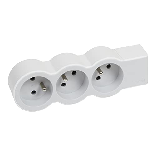 LEGRAND - Fiche Multiprise Quadruplite Extra-Plate - 4 Prises Latérales sans Terre 6A - Sécurité Enfant Intégrée - Blanc