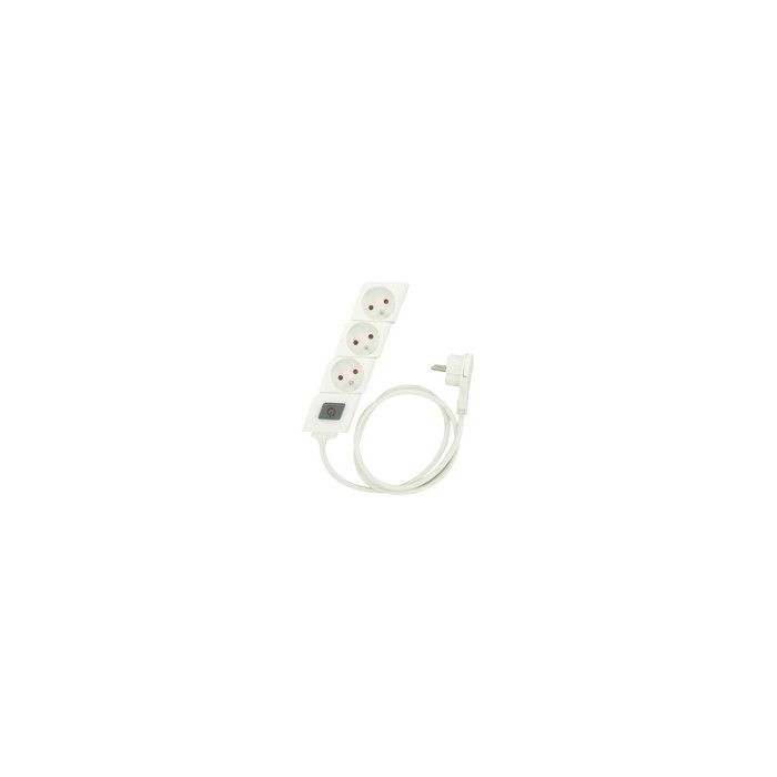 Meister conmetall Meister gmbh 7430170 Multiprise 3 Prises – Fiche Extra Plate – Câble de 1,4 m – Blanc – IP20 intérieur – Multiprise avec fiche Plate