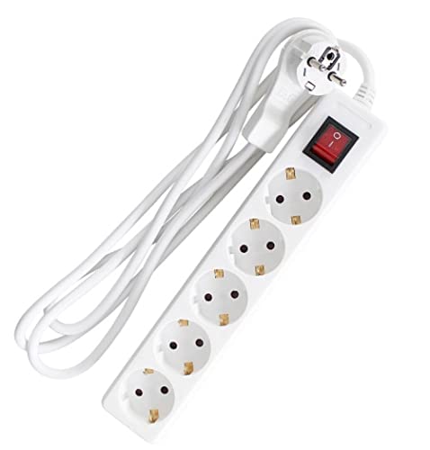 Extrastar Multiprise 5 Prises avec Interrupteur Fiche Plate, Bloc 5 Prises, Rallonge 3m 230 V avec sécurité Enfant, Blanc