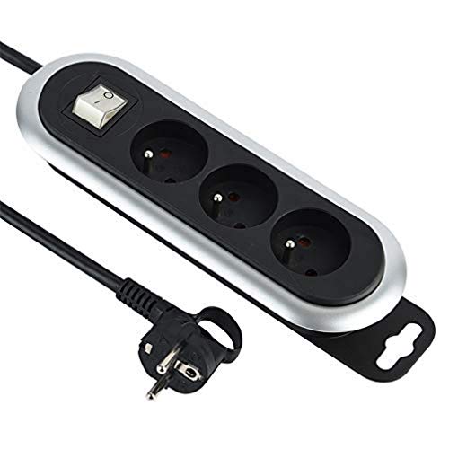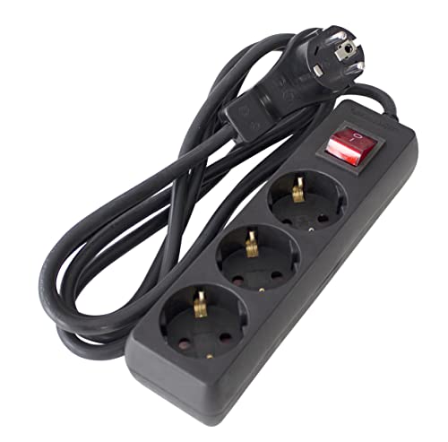 Extrastar Multiprise 3 Prises avec Interrupteur Fiche Plate, Bloc 3 Prises, Rallonge 3m 230 V avec sécurité Enfant, Noir