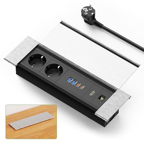 EVOTRADE Multiprise encastrée avec 2 SCHUKO 2 USB (A+C) 1 HDMI 1 Rj45 Prise multiple pour bureau (aluminium)