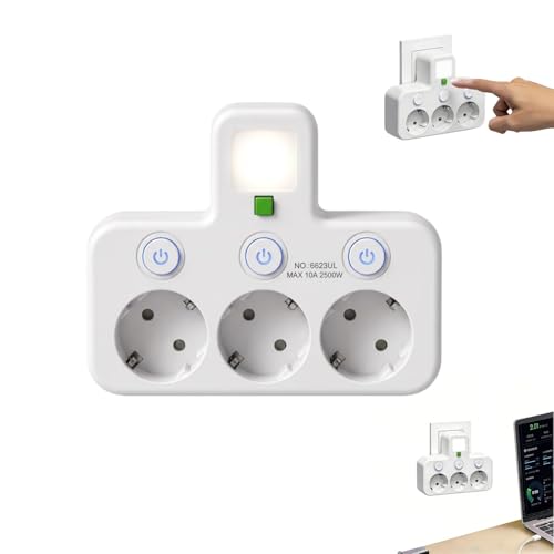 CILIA Multiprise Murale avec 3 Interrupteurs Individuels Triplette Sans Fil 3 Prises Schuko Bloc Prise Multiple 16A 3680W Adaptateur Commutable
